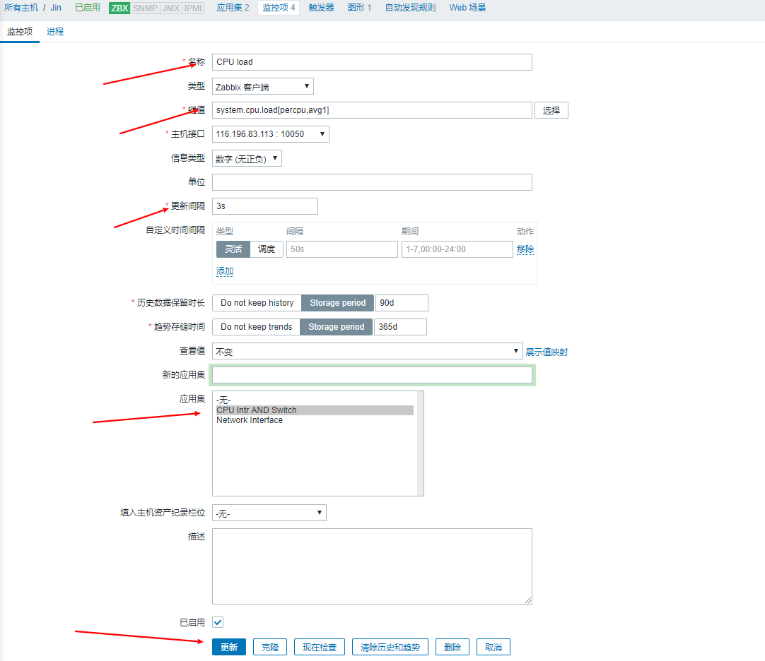 輸入CPU Load作為值,在列表中和其他地方,都會(huì)顯示這個(gè)值作為監(jiān)控項(xiàng)名稱.