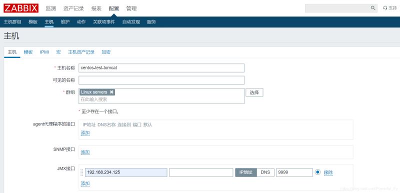 #與普通情況添加監(jiān)控主機不同,監(jiān)控B機器的tomcat需要配置JMX接口