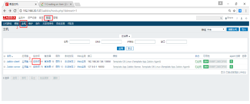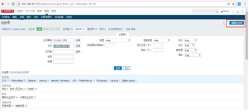 【配置】----【主機(jī)】----【監(jiān)控項(xiàng)】
