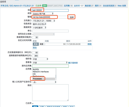 【鍵值】:需要監(jiān)控的端口 【應(yīng)用集】:Processes