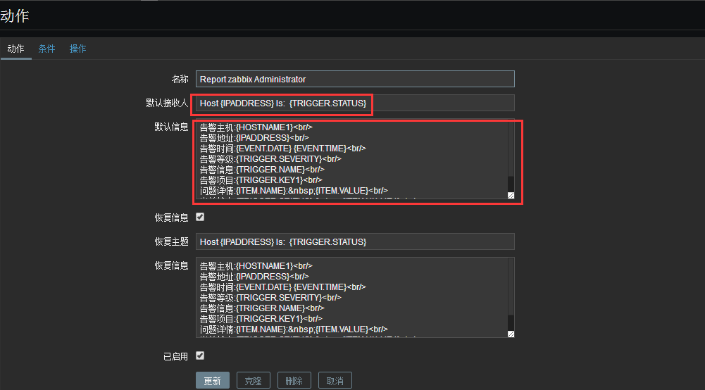 配置--動作--編輯郵件發送操作