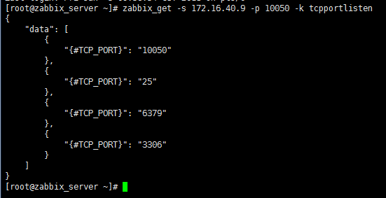 執行命令:zabbix_get -s 192.168.92.9 -p 10050 -k tcpportlisten