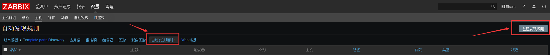 在上新創建的模板中點擊-->自動發現規則-->然后選擇創建發現規則