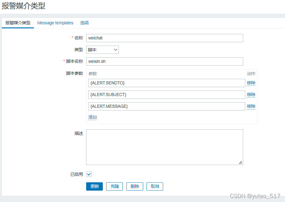 管理->報(bào)警媒介類型->創(chuàng)建媒體類型