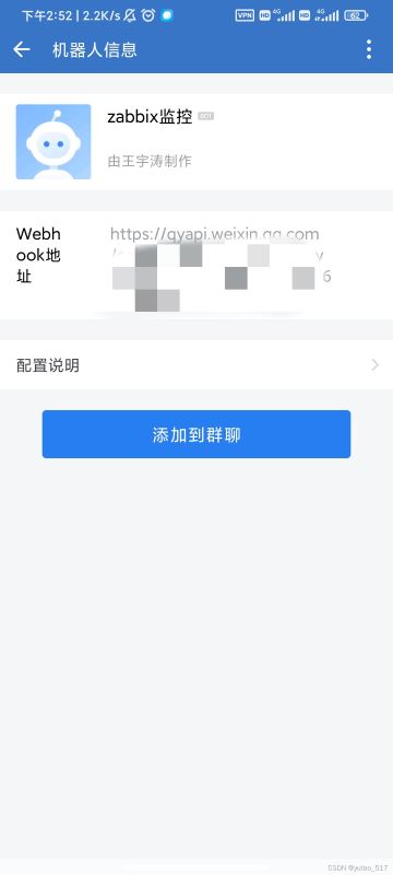 新建一個測試群聊,在群里添加機(jī)器人,記住webhook地址