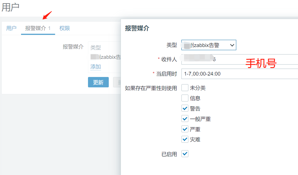 管理 --> 報警媒介類型 --> 創建媒體類型