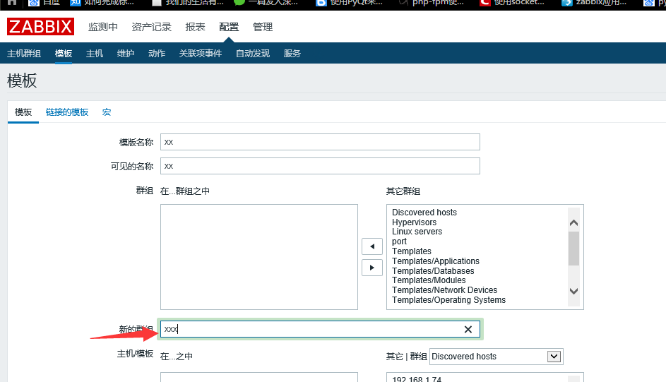 1.創建模板,模板名稱用來表示,這里監控端口,取名為Port,模板必須加入某群組,可單獨創建群組來區分。