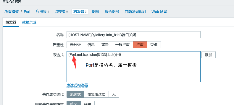 6.Port是模板名,如果這里選擇寫主機名或主機ip,則會變成單個主機的監控項,而不是模板的。