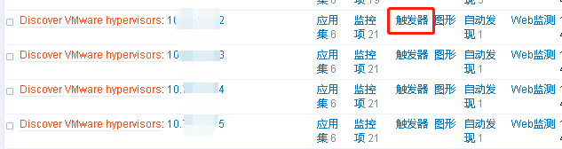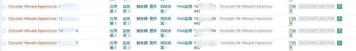 {$URL}{$USERNAME}{$PASSWORD}注:過一會就可以看到很多主機了,主機的添加是全自動的,依靠vcenter里面的自動發現,如果將VMS關閉那么將無法添加虛擬化中的虛擬機,hypervisors用來發現添加exsi主機。根據自己的監控內容選擇自動發現開啟項目,默認是全開的。