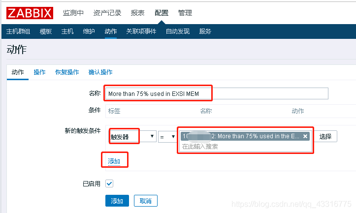 3、還有一個原因,如果你添加的動作是在觸發了報警之后的,那么也不會發郵件,所以在設置動作時所選定的觸發器最好是健康的,如果是為了測試,最好加完動作之后再改觸發器的閾值。