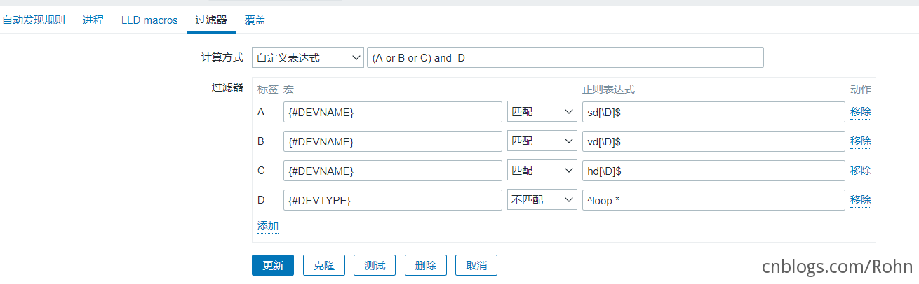 [ { "{#DEVNAME}":"loop1", "{#DEVTYPE}":"disk" }, { "{#DEVNAME}":"dm-0", "{#DEVTYPE}":"disk" }, { "{#DEVNAME}":"sda", "{#DEVTYPE}":"disk" }, { "{#DEVNAME}":"sda1", "{#DEVTYPE}":"partition" }]配置過濾器