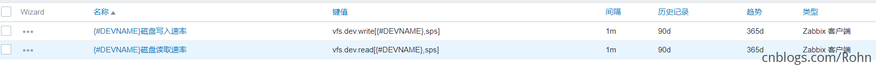 - 讀:vfs.dev.read[{#DEVNAME},sps]