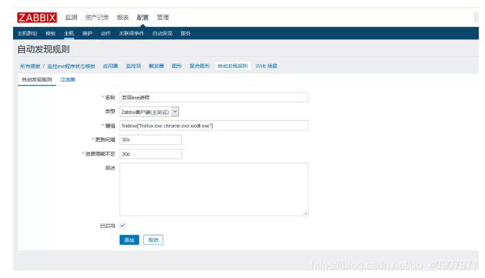 然后在剛才的check_exe_status模板中,創(chuàng)建自動發(fā)現(xiàn)規(guī)則