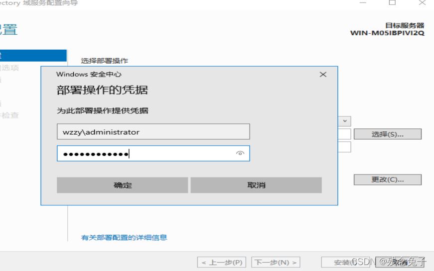 點擊更改以后,會彈出輸入賬戶密碼的界面,在此我們輸入benet\administrator的賬戶密碼---確定---下一步