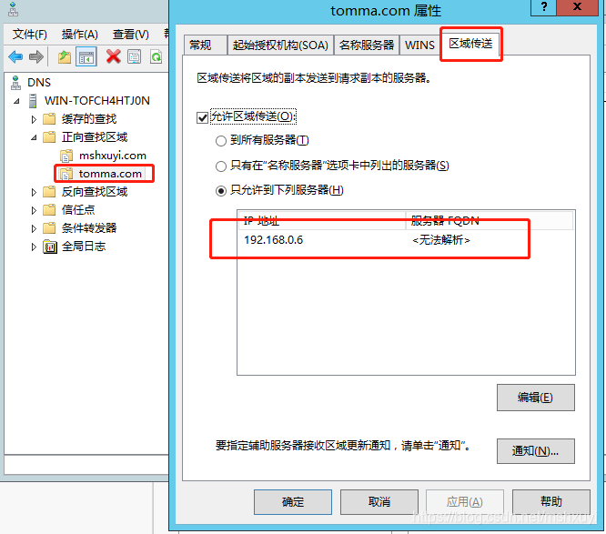 找到要同步的域名右鍵屬性 → 區域傳送 → 編輯 → 添加輔助 DNS服務器的 IP