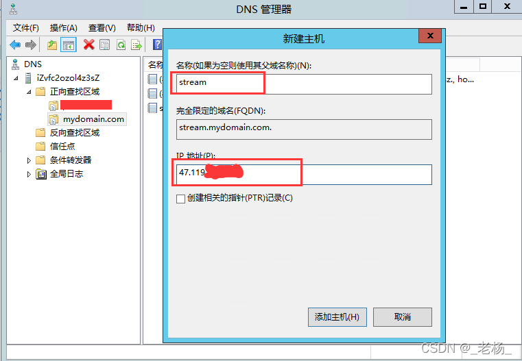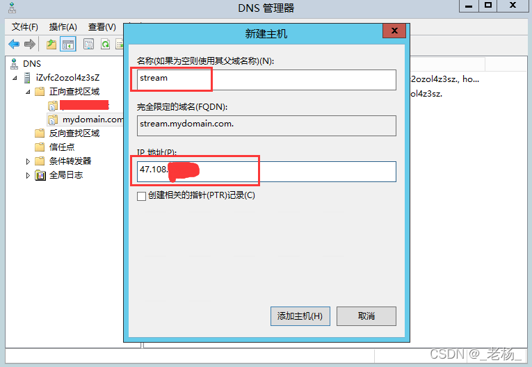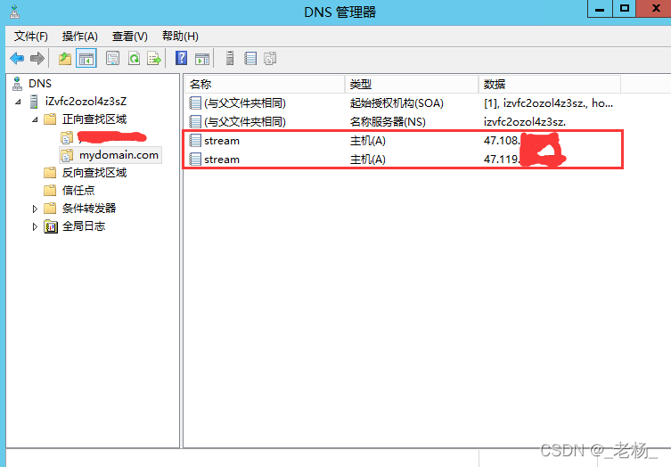 按照以上配置,stream.mydomain.com 就會被解析到 47.108.xx.xx。如果域名需要解析到多臺服務器作負載均衡,可以用同樣的名稱,不同IP按以上步驟添加新的主機