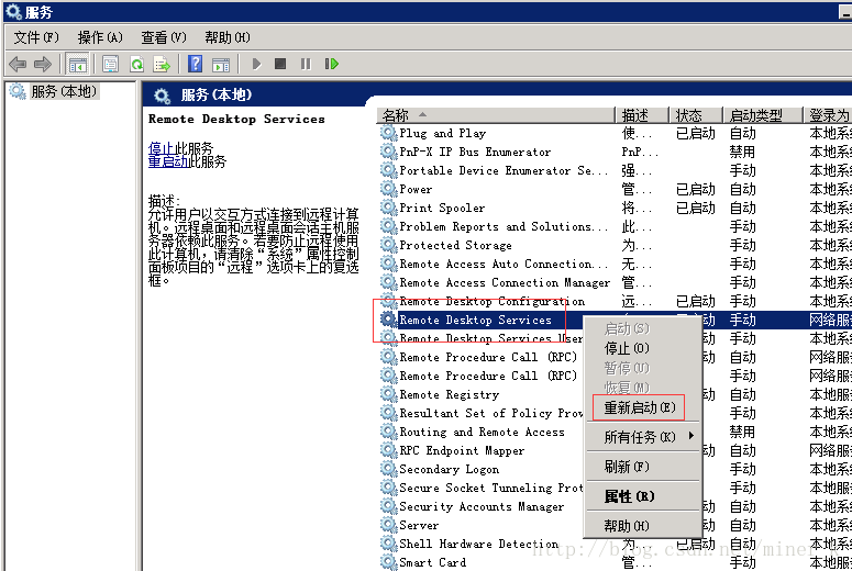 重新啟動(dòng)Remote Desktop Server