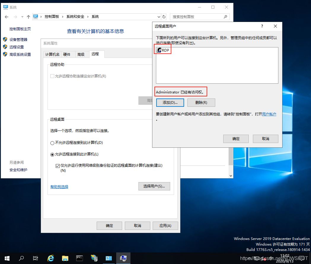 現在只有RDP用戶具有遠程桌面登錄的權限。