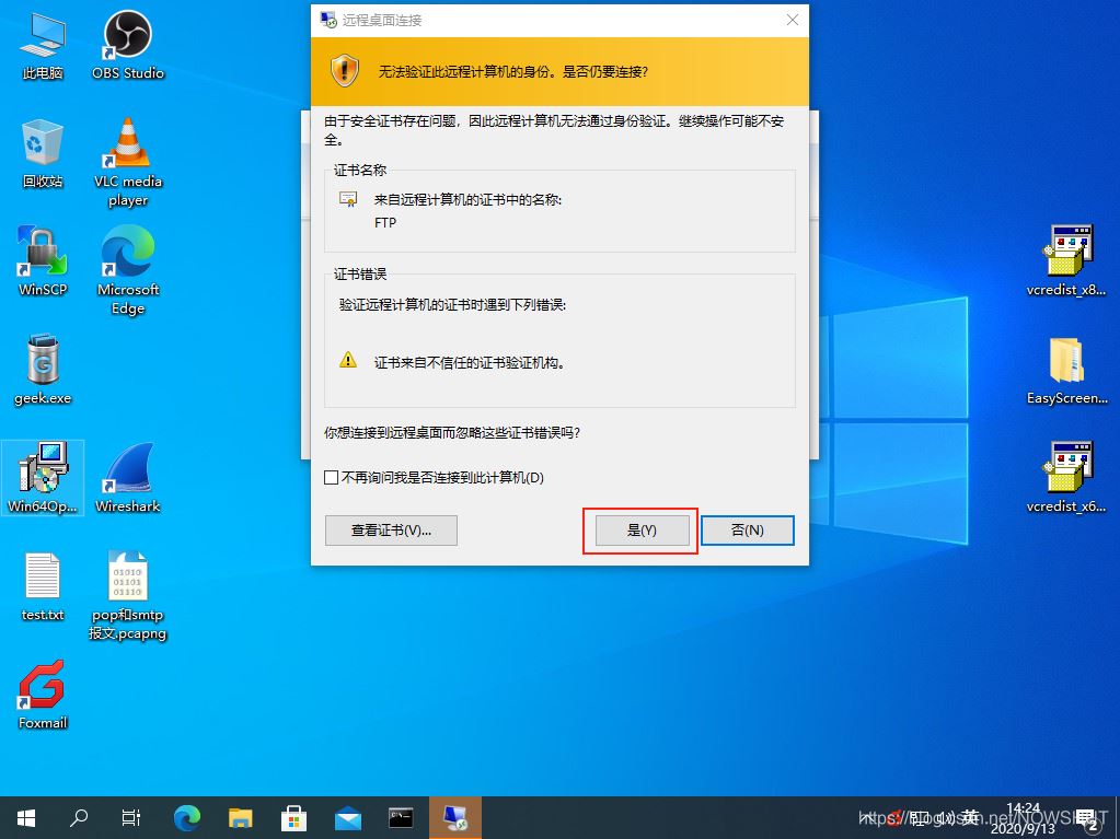 (4)彈出證書告警提示框,忽視,點擊【是】