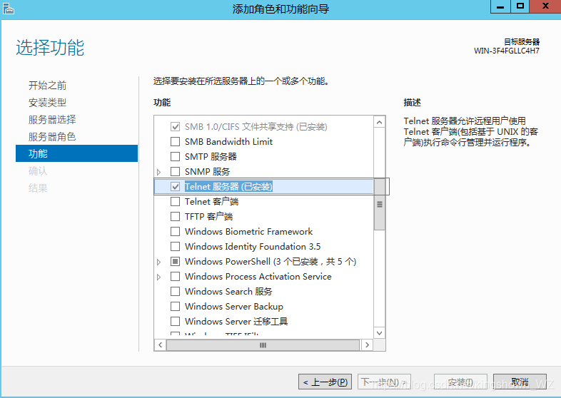 2、開啟Telnet服務端【Windows Server 2012 R2 】