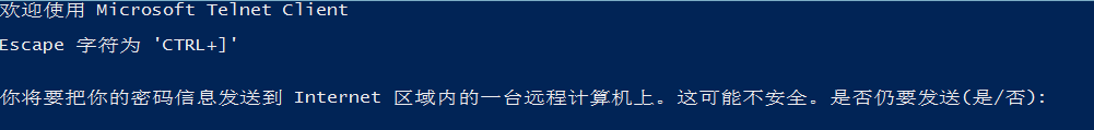 檢驗Telnet服務是否開啟:命令行界面中輸入 telnet 127.0.0.1,出現如下圖證明啟動成功