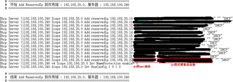 netsh dhcp server192.168.100.240 scope 192.168.20.0 dump > d:\dhcp20.txt