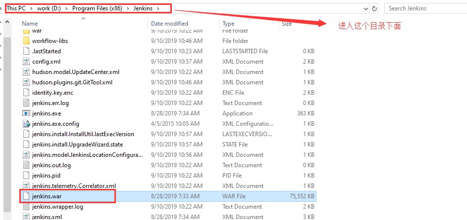 以管理員身份啟動cmd窗口,然后進入Jenkins安裝目錄下有jenkins.war文件的目錄下: