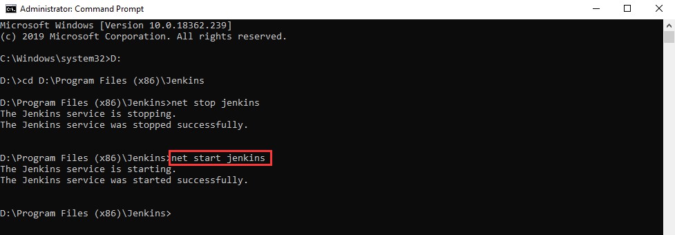 修改這里的端口號即可。修改完端口號,重啟Jenkins服務。可以使用命令net start jenkins
