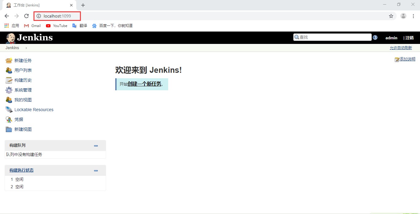 啟動Jenkins服務以后,在瀏覽器里面輸入:http://localhost:1099/