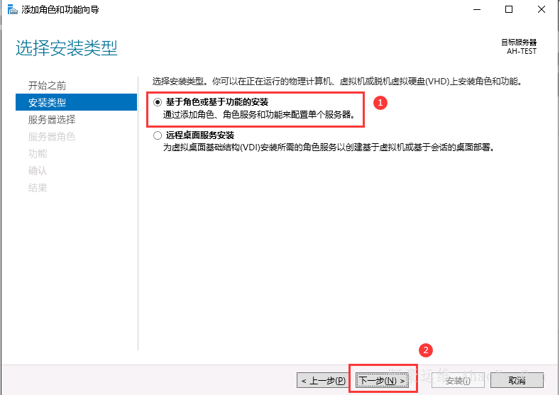 4、選擇:基于角色或基于功能的安裝,然后下一步