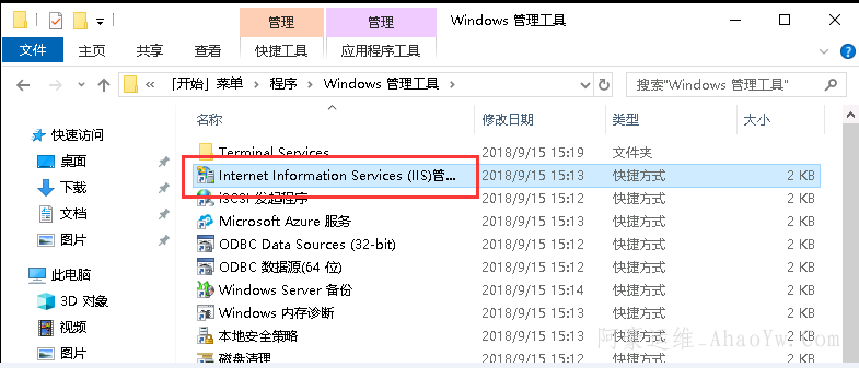 14.進入到C:\ProgramData\Microsoft\Windows\Start Menu\Programs\Administrative Tools目錄下找到iis管理工具(也可以在左下角開始菜單所有程序里面找到IInternet Information Services (IIS)管理器 )
