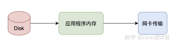 在Linux系統內部緩存和內存容量都是有限的,更多的數據都是存儲在磁盤中。對于Web服務器來說,經常需要從磁盤中讀取數據到內存,然后再通過網卡傳輸給用戶: