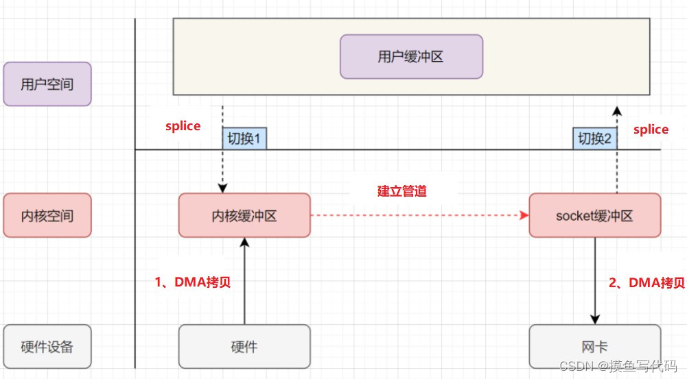 splice 系統調用在 Linux 2.6 版本引入,不需要硬件支持,并且不再限定于 socket 上,實現了兩個普通文件之間的零拷貝。