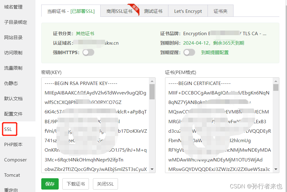 - 2 找到寶塔面板的 站點設置 找到SSL設置