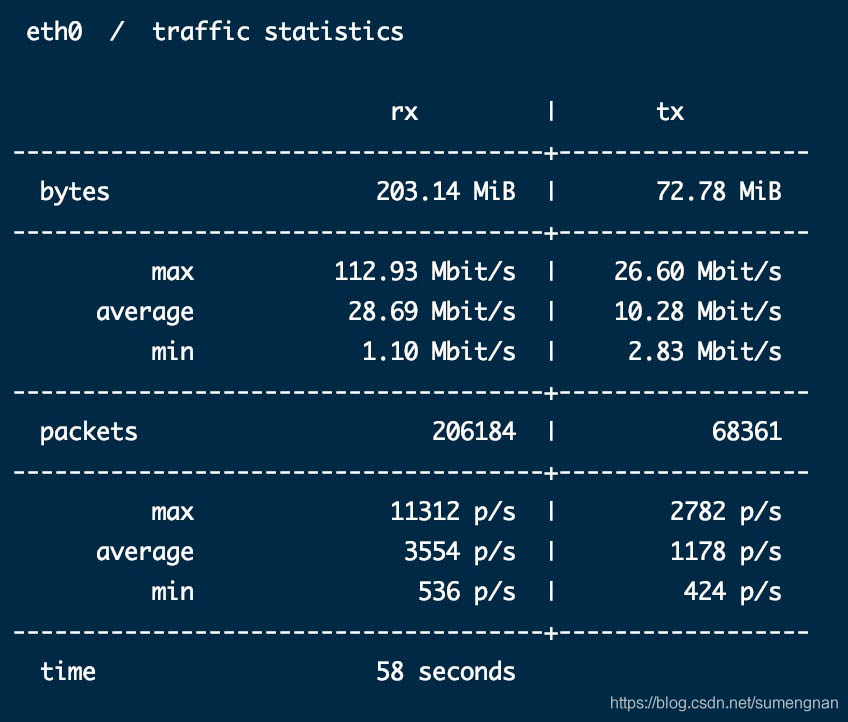 ctrl+c結束后,會顯示監控期間的流量統計結果