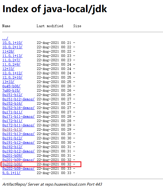 官方下載需要注冊oracle賬號,國內下載有可能速度慢,若不想注冊賬號且需要更快的下載速度,可以通過國內的鏡像網站進行下載。這里提供一個華為鏡像網站:https://repo.huaweicloud.com/java/jdk/.