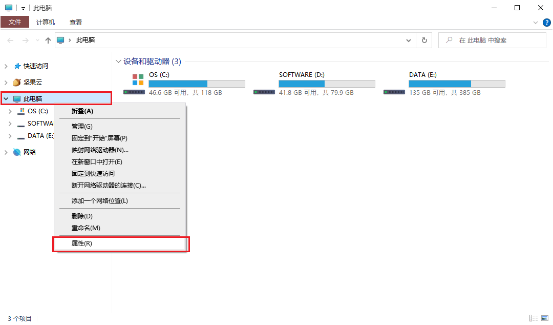 桌面有此電腦圖標的可以右鍵此電腦圖標->點擊屬性;無此電腦圖標的可以在資源管理器中左側找到此電腦,然后右鍵此電腦圖標->點擊屬性。