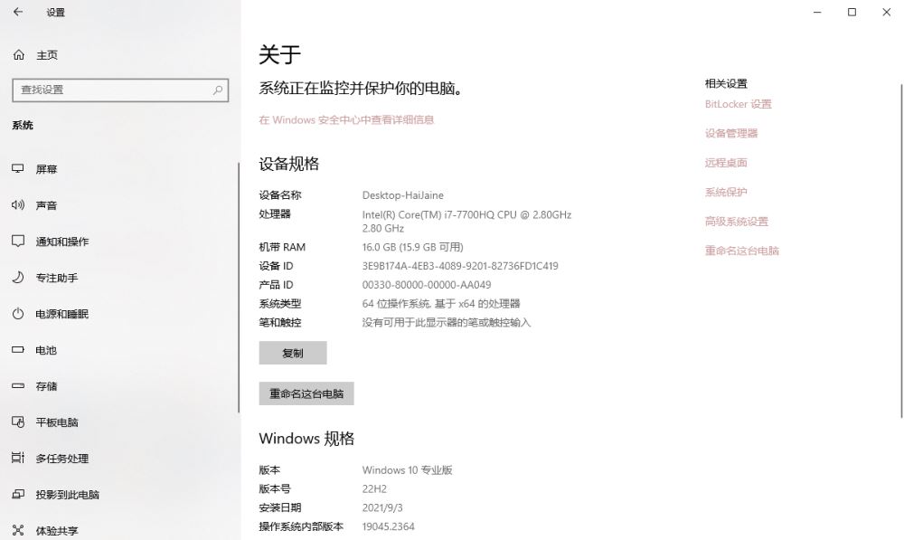 使用快捷鍵:win+pause。pause鍵一般在方向鍵最上面靠右,若筆記本電腦一般不怎么好找,可以使用前兩種方式。這里再提供一個方式進入,不過步驟比較多,不建議通過此方式進入。開始菜單中點擊設置->點擊系統->在左側往下找到關于并點擊。