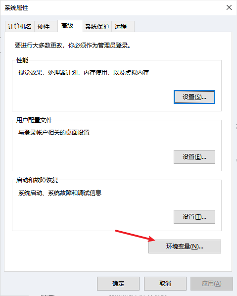 點擊高級系統設置后,會出現一個系統屬性的窗口,在這里點擊環境變量,就可以進行環境變量的配置了。