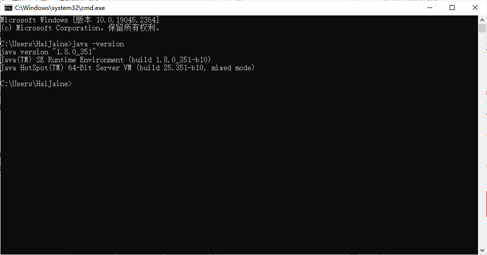 在cmd窗口中輸入java -version,出現以下內容,表示安裝完成。