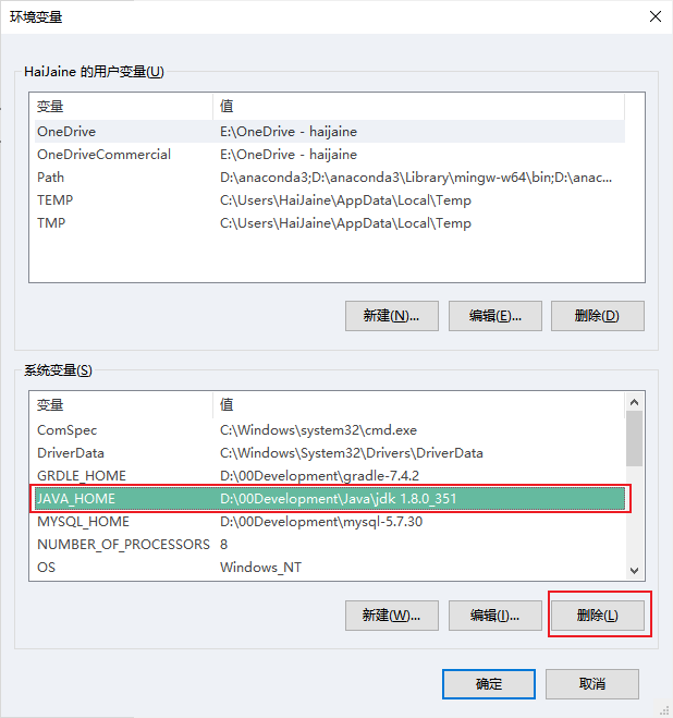 卸載完成后,需要清理環境變量。清理方式與安裝方式類似,這里對打開環境變量不在贅述。