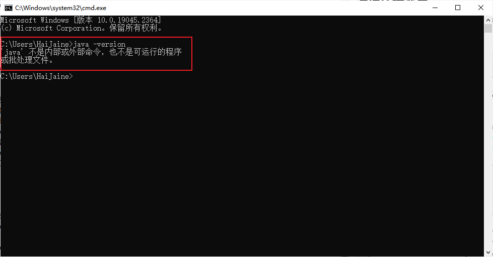 若出現以下提示,則說明jdk安裝失敗,需要返回前面步驟進行檢查。