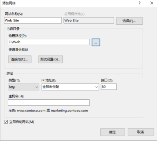 主機(jī)名即為網(wǎng)站的域名,綁定后客戶端只能用該域名訪問網(wǎng)站,若不綁定主機(jī)名,可以為空靜態(tài)資源路徑可以是本地磁盤上的文件夾,也可以是網(wǎng)絡(luò)共享文件夾