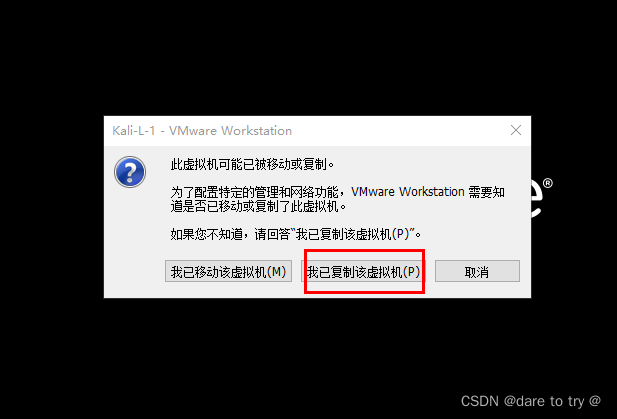 (6)啟動虛擬機。彈出以下窗口時,選擇“復制該虛擬機”。