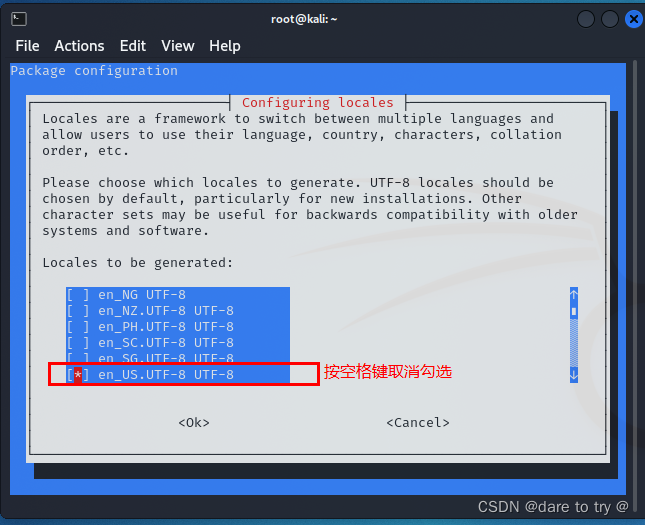 (3)執行dpkg-reconfigure locales命令,出現以下對話框。