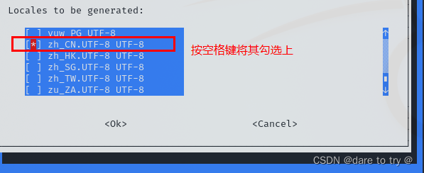 (5)找到選項 zh-CN.UTF-8.UTF-8,按空格勾選上。