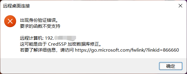這可能是由于CredSSP加密數(shù)據(jù)庫修正。