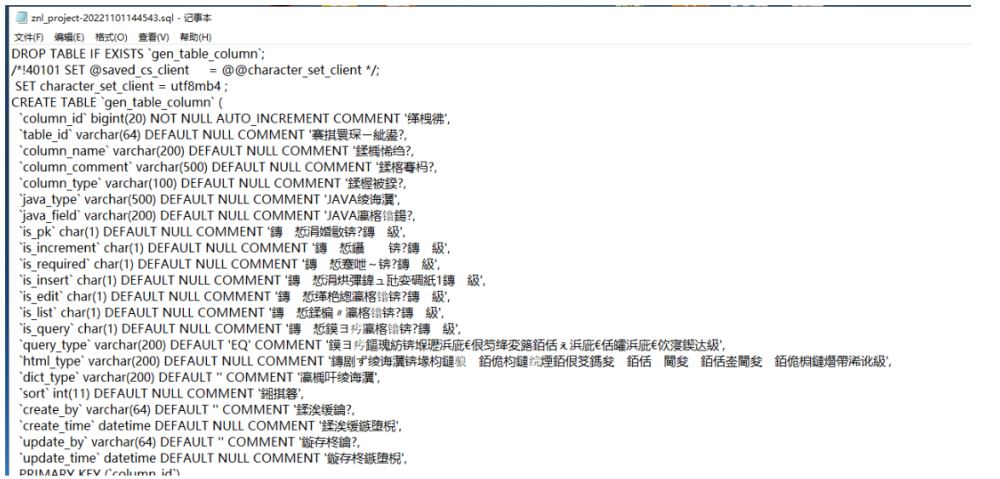 但是,當我們打開文件看的時候,發現里面的備注,中文相關的都是亂碼(PS:Notepad++ 軟件打開不會,可能是因為這個軟件比較智能)