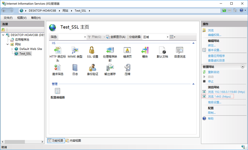 9. 點擊“確定”后,網站多出了用443端口訪問(https協議),至此證書部署完成。