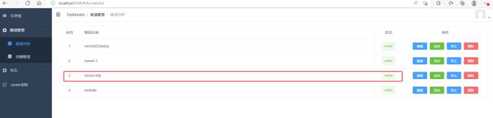 隧道創建成功后,可以在隧道列表中,查看到我們剛剛創建的隧道。